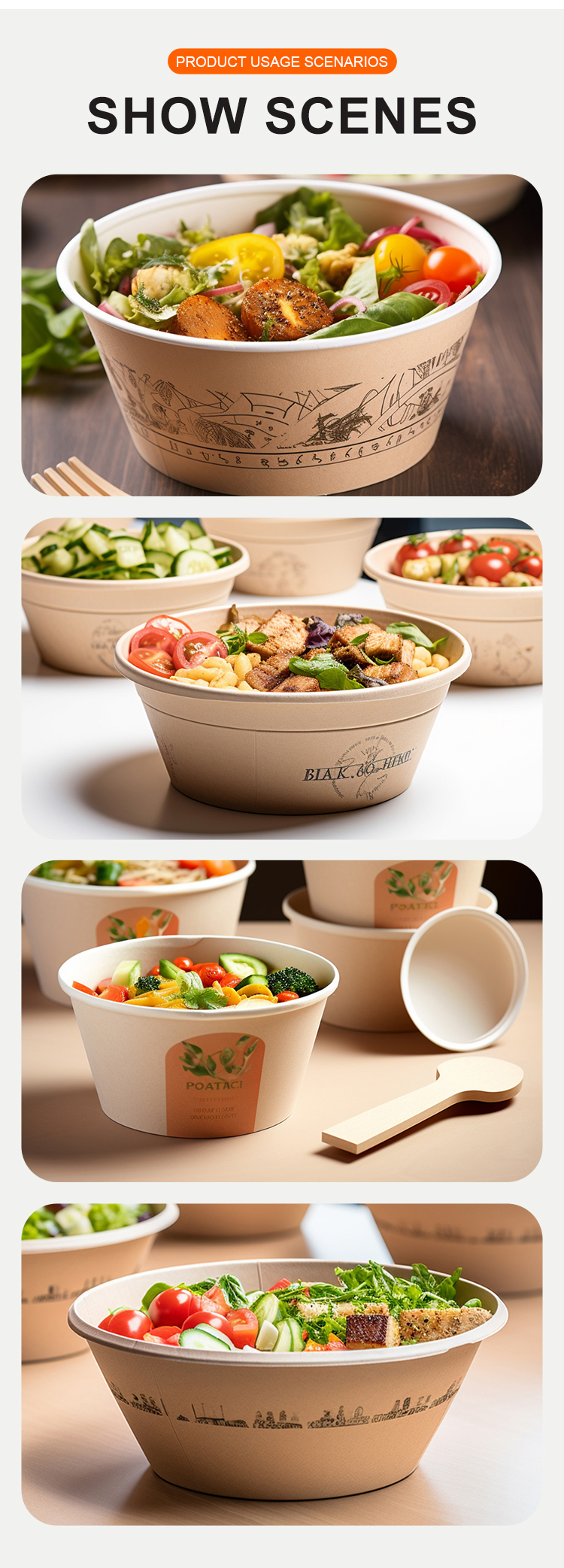 - Kraft Paper Salad Bowl With Plastic Lid
